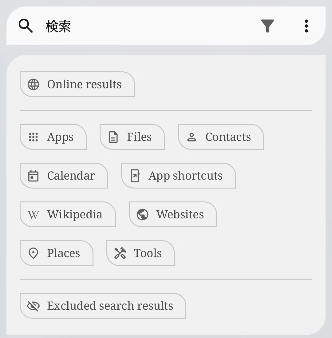 このランチャーを導入する最大の理由は、間違いなく「検索機能」にあります。Kvaesitsoは、アイコンをタップしてアプリを起動するのではなく、検索バーからすべてのアクションを起こすことを前提に設計されています。